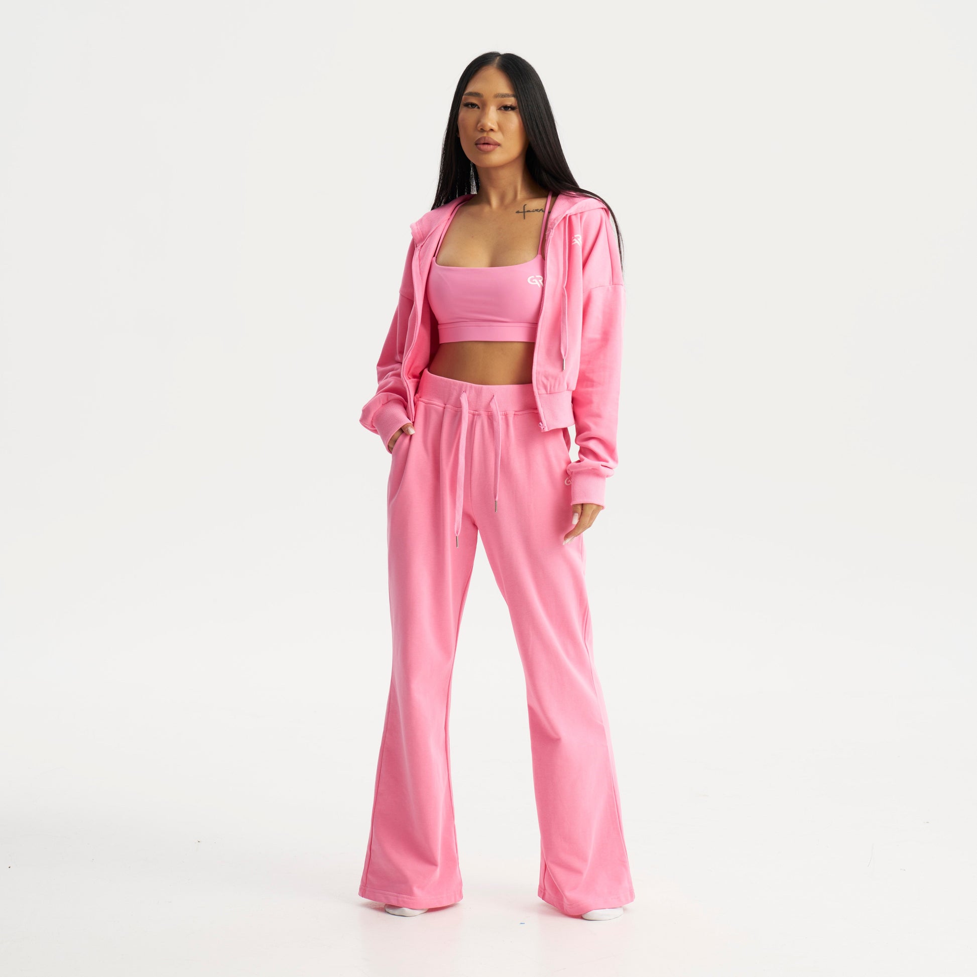 Setul lărguț, cu bustieră inclusă, îți oferă libertate de mișcare, dar și încredere în stilul tău urban-fitness. Perfect pentru sală, plimbări sau pur și simplu să te simți bine în pielea ta.